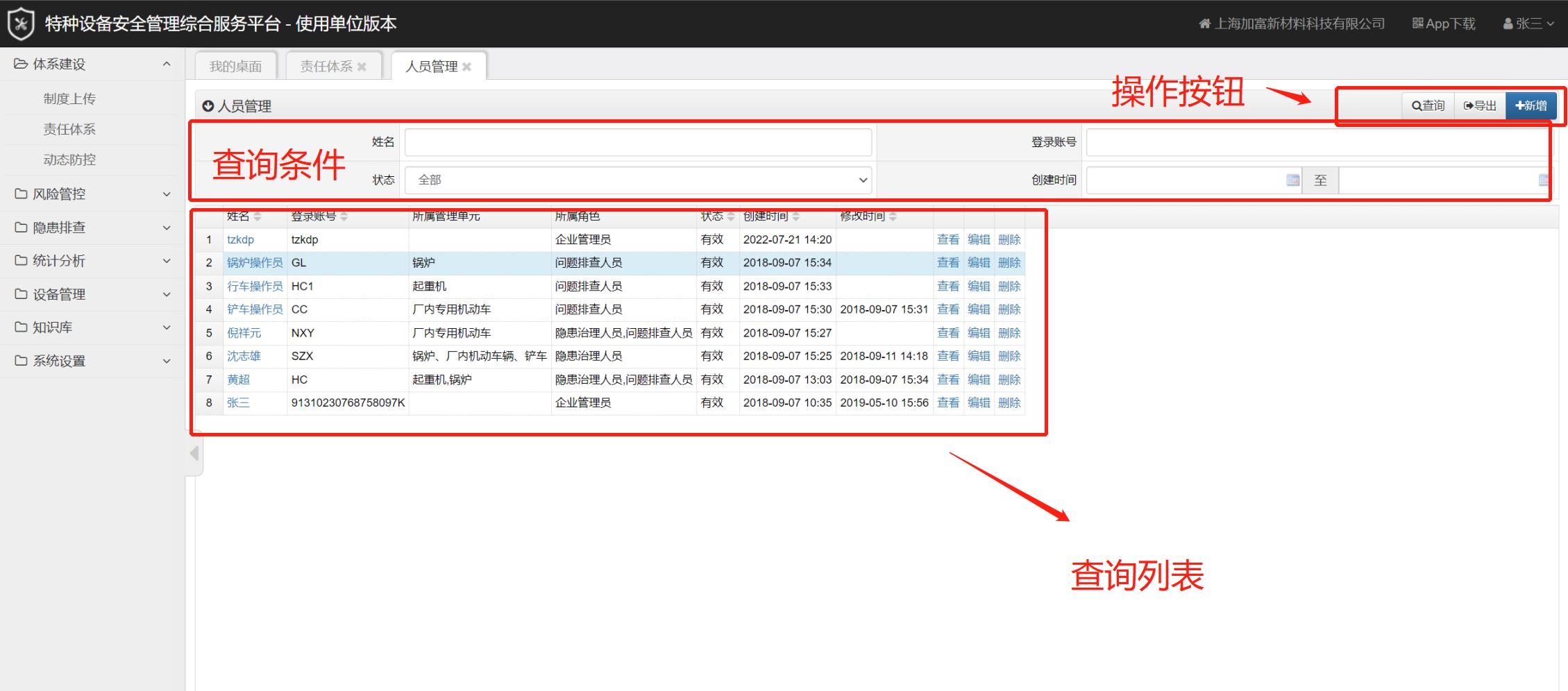 数据查询:提供特种设备数据的查询功能,包括按照地区、行业、类型、状态等条件进行查询,查询结果可以以列表、图表等形式展示。