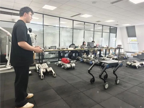 山东优宝特智能机器人有限公司技术人员正在测试机器人性能(图源:新华社 邵鲁文 摄)