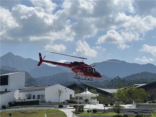 游客乘坐直升机畅游黄山市黄山区悠悠湖文旅街区(图源:新华社)