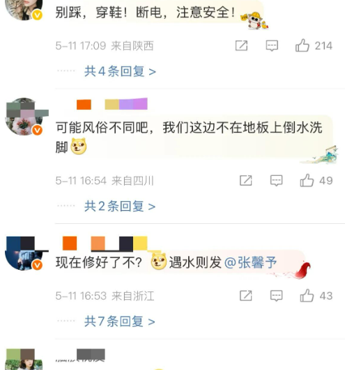 当然,也有不少真心关心她的网友在评论区提醒:“可千万别光脚踩水,万一漏电就危险了,赶紧先把电闸拉了”,还有人操心:“快看看水会不会漏到楼下,别给邻居造成麻烦” 。