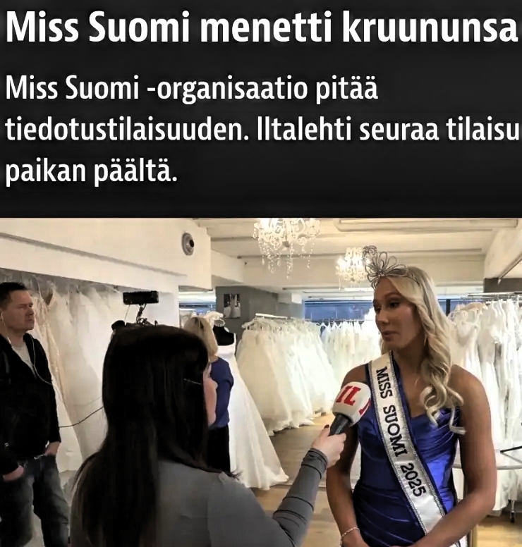 更让网友解气的是,发布会现场直接上演“冠军换任”大戏:根据竞选规则,亚军TaraLehtonen当场接过皇冠,正式成为新任芬兰小姐。Sunneva为其加冕时特别强调:“芬兰小姐不仅是荣耀,更是代表芬兰价值观、尊重所有人的责任”。这场全程公开的“换人直播”被芬兰媒体全程报道,标题直指“芬兰小姐丢掉了她的王冠”,相关片段在社交平台刷屏,网友纷纷留言“大快人心”“这才是反歧视该有的态度”。