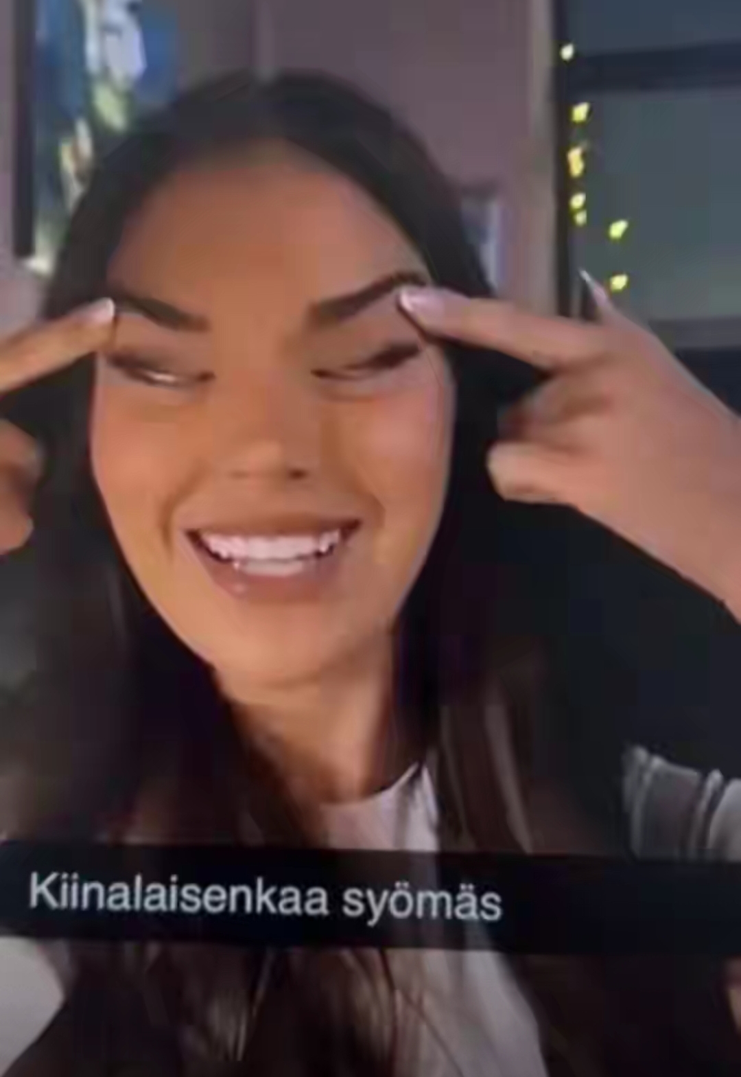 事情要从那张引发全网声讨的照片说起。2025年12月,芬兰小姐冠军SarahDzafce在社交媒体发布的一张合影突然“出圈”:画面中她对着镜头双手拉眼角,做出国际公认的歧视亚裔的“眯眯眼”手势,配文更是直白写着“和中国人吃饭”。
