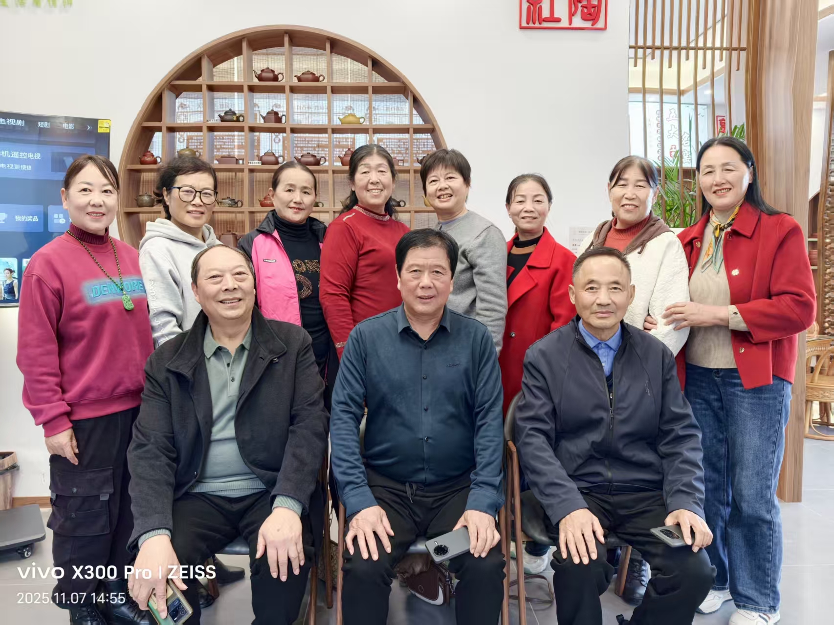 11月7日,商城县老北街裹在细密雨丝里,初冬寒意渐生,天幕如筛,珠玉轻洒,织就一片朦胧清润。我们十二名老干部摄影班学员,循着游老师的脚步,踏入了藏于街巷间的红陶秘境——郭窑林茶居。