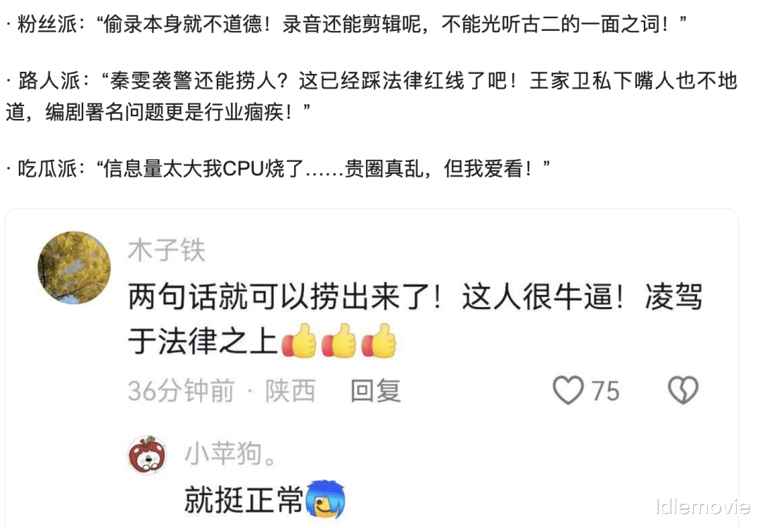 王家卫录音事件,我们关注点被八卦覆盖了,这都是小事,我们更应该关注录音中的袭警,特权一事,这才是该上热搜的事。
