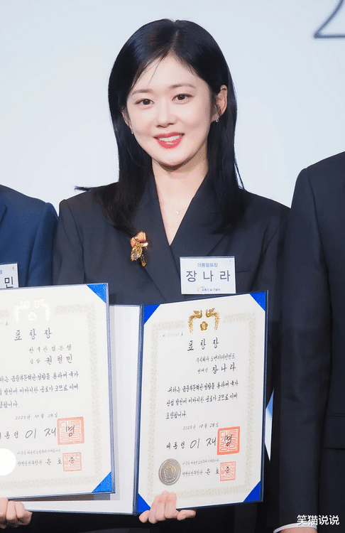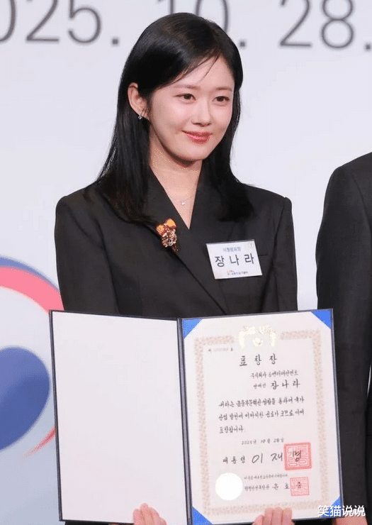 张娜拉出道至今为韩国慈善机构捐赠累计超过200亿韩元(约人民币9920万元),同时还为韩国各地区的弱势群体儿童等做志愿服务,可以说是为韩国社会做出了很大的贡献。所以,由韩国总统李在明为表扬张娜拉对韩国做的贡献,特地为她表彰奖章。表彰奖章由金融服务委员会委员长李亿玉在现场颁授给张娜拉。