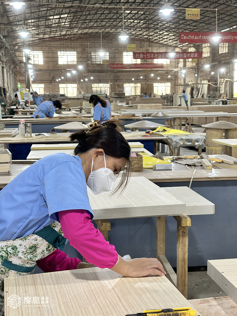 酒店家具的「高级感」,是高档主材与优质配件的精准契合。度高深谙此道,以近乎苛刻的标准,对产品配件进行筛选、测试与检验。