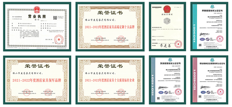 凭借硬核制造实力与技术沉淀,度高酒店家具在业内率先通过ISO三体系认证,获得了中国环境标志产品认证(十环认证)、中国绿色环保产品认证、绿色供应链评价认证及低VOCs家具产品认证等多项权威资质。