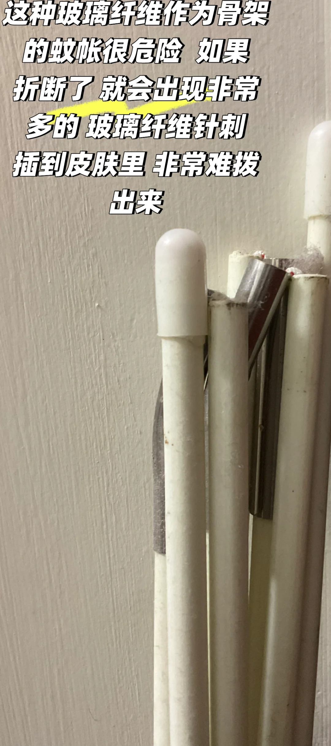 可如果它出现断裂,就会使玻璃纤维露出,也会伤到家人,所以我们在买蚊帐的时候一定要注意了,最好不要买这种蚊帐杆。