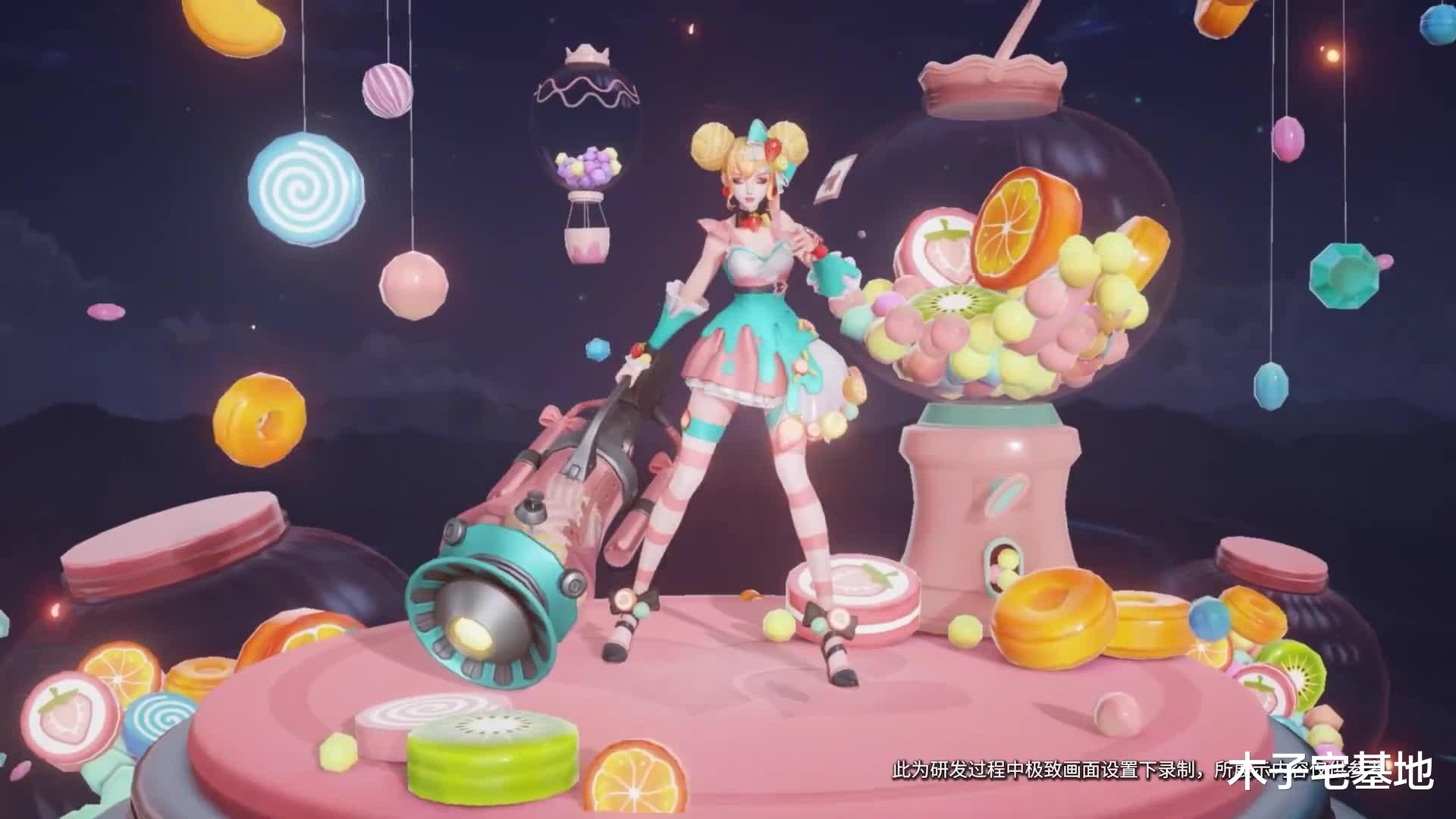 最后一款皮肤是孙尚香的水果甜心,孙尚香的水果甜心皮肤以甜美的造型和出色的手感成为了许多射手玩家的最爱。这款皮肤极具创意,孙尚香化身为糖果公主提着糖果炮在水果糖的围绕中自由穿梭,技能特效也贴合主题,一技能翻滚后打出的炮弹变成了一颗巨大的草莓糖,二技能投掷出五彩斑斓的水果糖,大招则是发射一枚糖果炮弹。