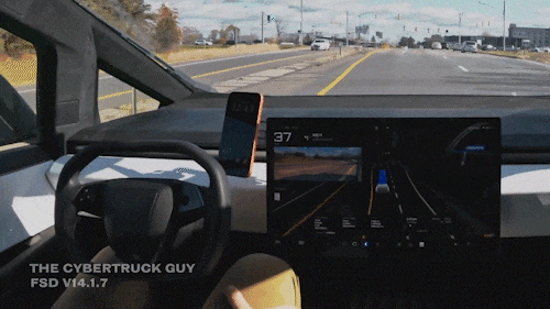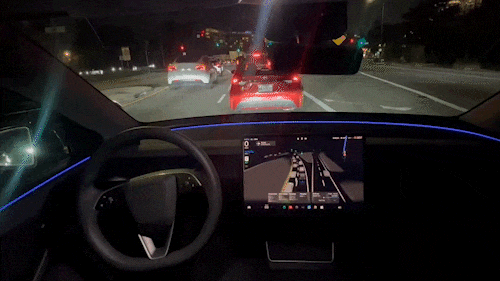 FSD创造了一幅极具未来感的画面。