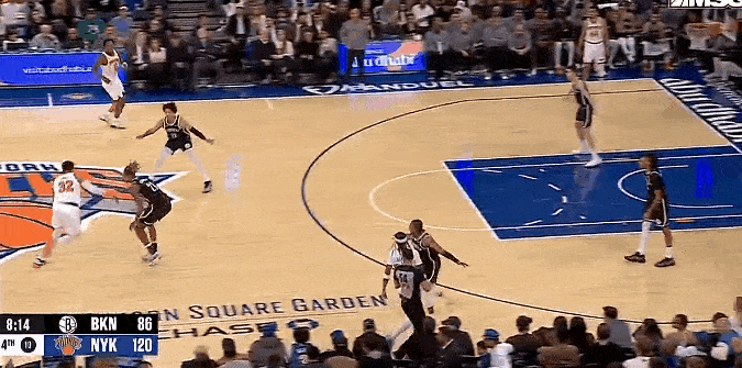 NBA常规赛,篮网对阵尼克斯的比赛正在进行中。