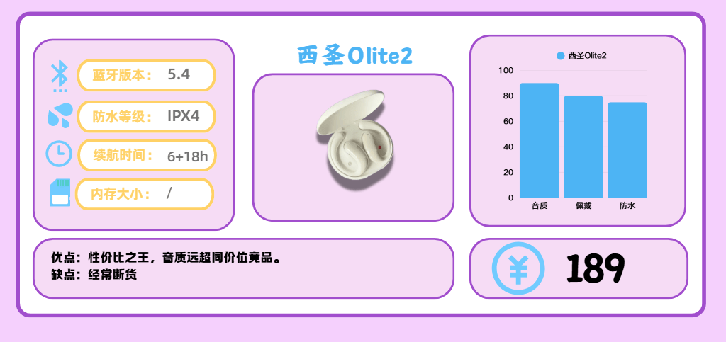 西圣在开放式耳机领域有多年布局,面向欧美市场积累了一定口碑。Olite2 凭借扎实的做工与稳定的表现获得了市场关注,甚至曾获 CCTV 展播推荐,在百元价位中以可靠品质和良好口碑脱颖而出。