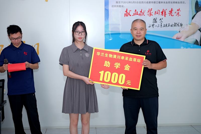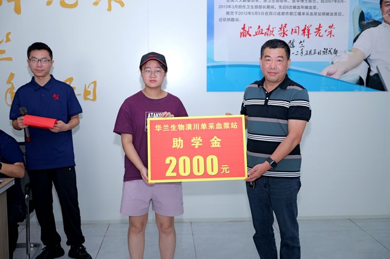 仪式上,与会领导为优秀献浆员子女颁发助学金。刘大库在致辞中表示,希望同学们要怀感恩之心,铭记党和政府的关怀、社会各界的支持和父母的养育之恩,刻苦学习,不断进步,以优异的成绩和出色的表现回报社会;也希望更多企业能像血浆站一样,将服务地方、回馈社会作为发展理念,积极承担社会责任,为潢川慈善事业贡献力量。