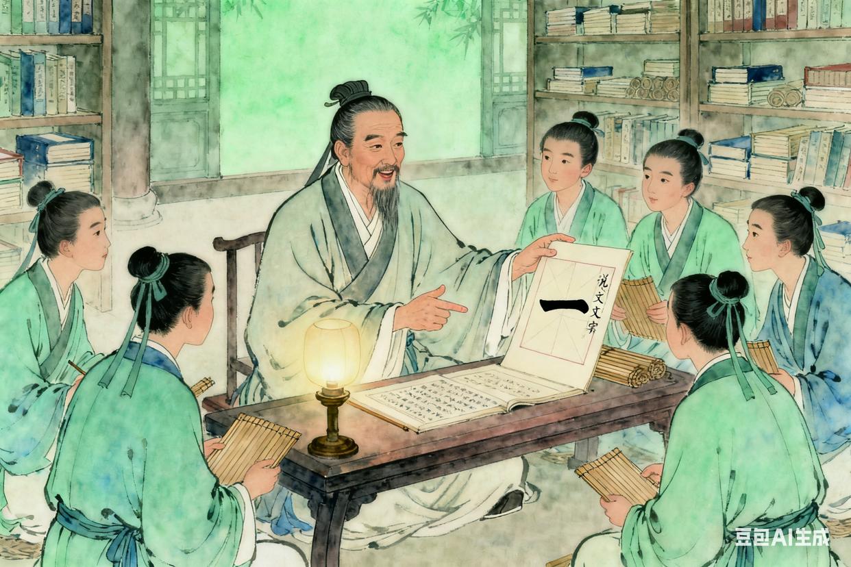 许慎去世后,《说文解字》慢慢流传开来。顺帝时期,经学大师郑玄看到这部书,如获至宝,连夜挑灯研读,还专门为它做注。有一次,郑玄的学生问:“先生,许君为什么要把‘一’字放在第一篇开头?”郑玄指着《说文解字》的开篇,慢悠悠地说:“许君说‘惟初太始,道立于一’,他觉得‘一’是万物之始,文字也是从简单到复杂,这是他的智慧啊。咱们读这部书,不只是认字形,更是认道理,认咱们中华文明的根。”在郑玄的推广下,《说文解字》成了学子必读的典籍,越来越多人知道,原来每个汉字背后,都有这样深厚的故事。