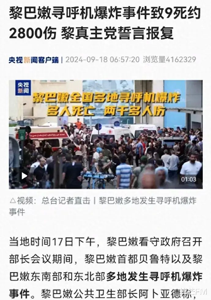 这次寻呼机大规模爆炸,不仅重创了黎巴嫩真主党,而且在整个黎巴嫩制造了大规模恐慌!目前有消息称不仅是寻呼机,黎巴嫩的一些手机、电视机,甚至是家用太阳能和理发推子都发生了爆炸,从中明显可以看到有的是谣传,毕竟一个理发推子被远程控制的概率太小了,但这种谣传的背后就是黎巴嫩已经陷入了大规模恐慌,在中东战乱持续的当下,这种全国性恐慌对黎巴嫩来说显然是极为不利的!