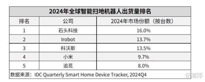 自2018年扬帆出海,石头科技的全球化版图已扩张至170多个国家和地区,在韩国、北欧、德国等核心市场的份额更是超过50%。继2024年斩获全球扫地机器人市场出货量与销售额双料冠军后,2025年前两个季度其出货量仍稳居全球首位。