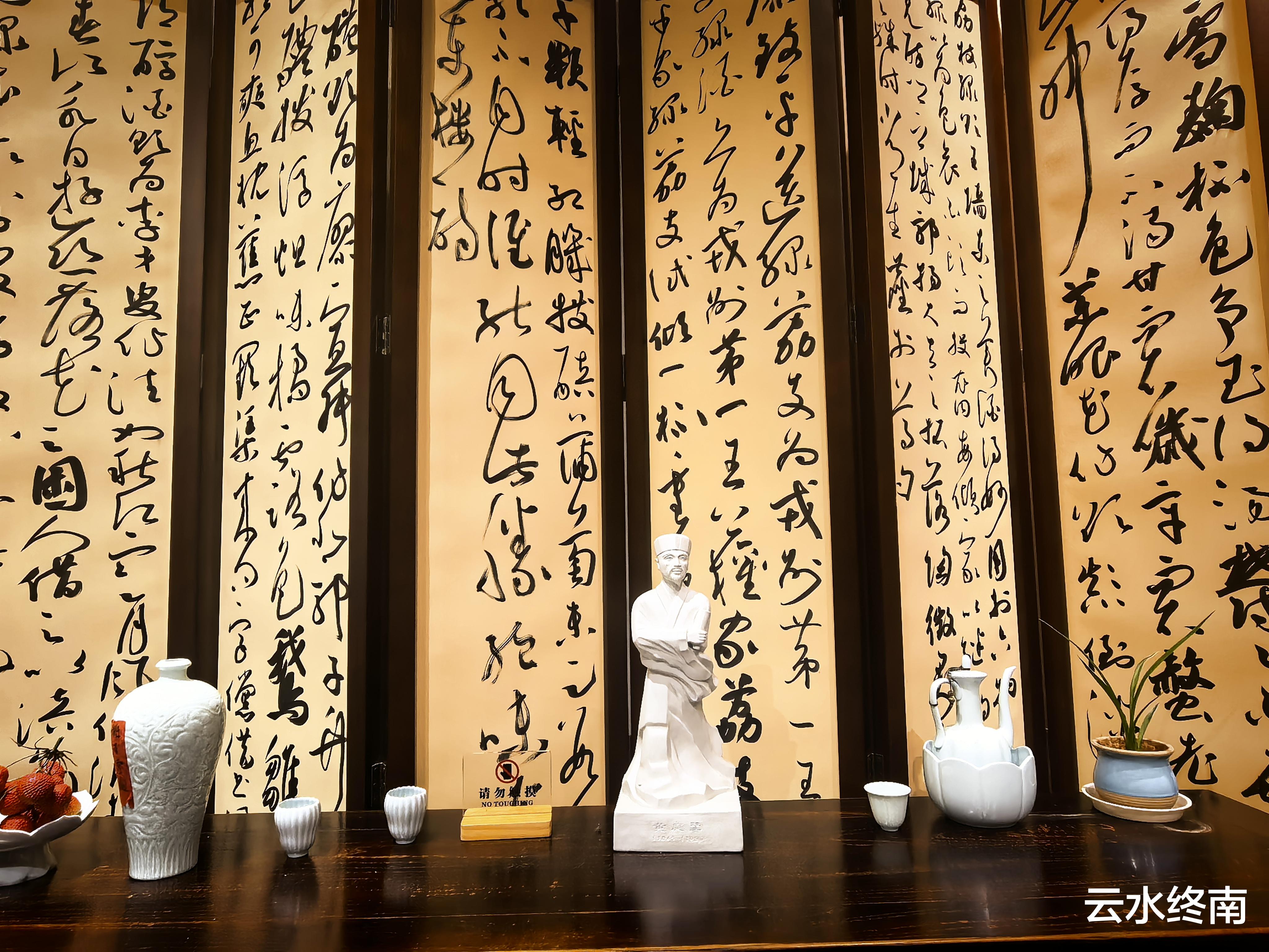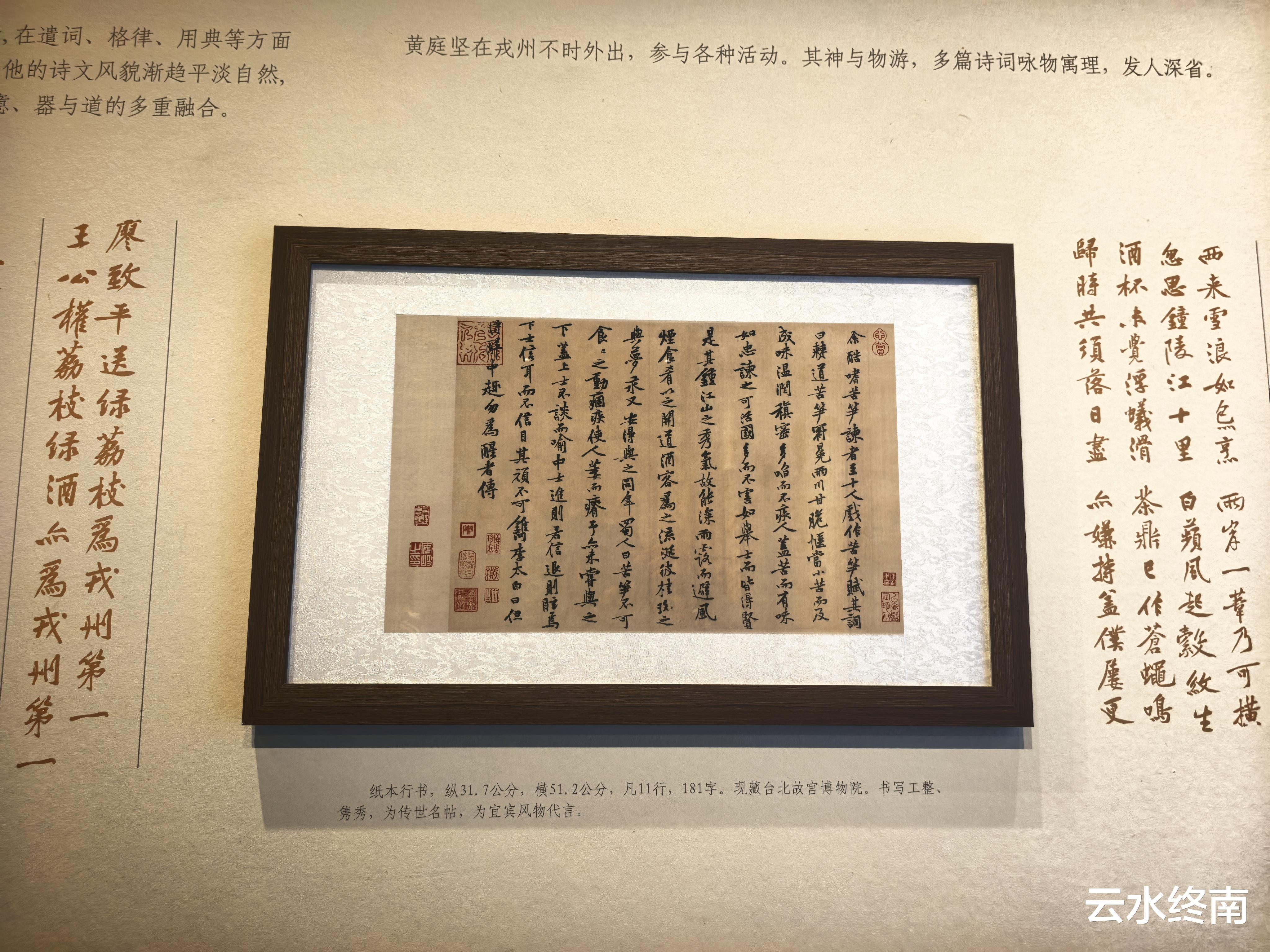 这里主打的黄庭坚,当年老黄寓居戎州时,饮用取安乐泉水酿制的美酒“姚子雪曲”(五粮液前身)后留下的传世名作《安乐泉颂》而得名。