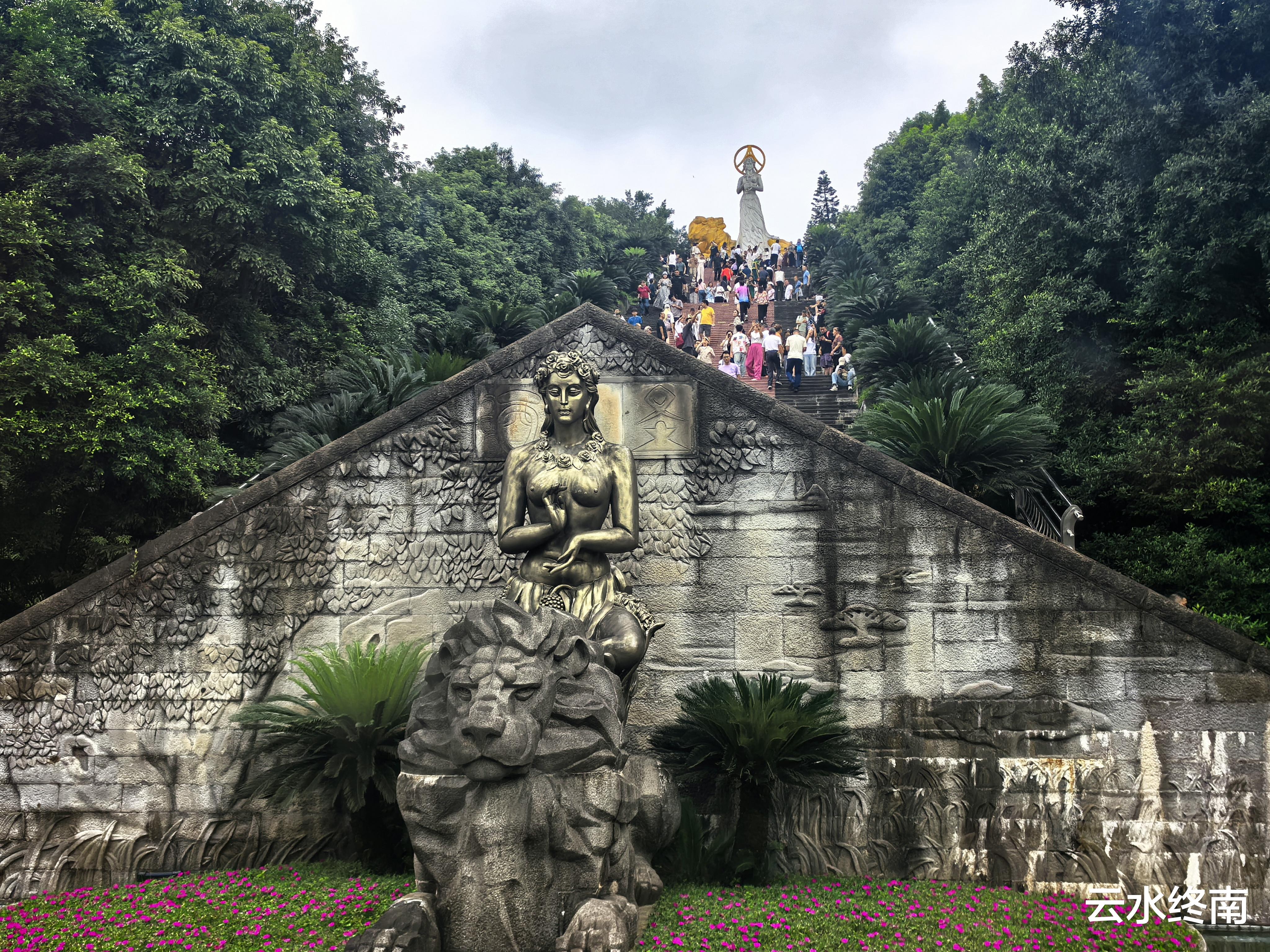 看着台阶挺高,打听上面也有一个酒圣雕像,还有一个祭拜的台子。再上面还有一个日月宫,说是接待贵客的。