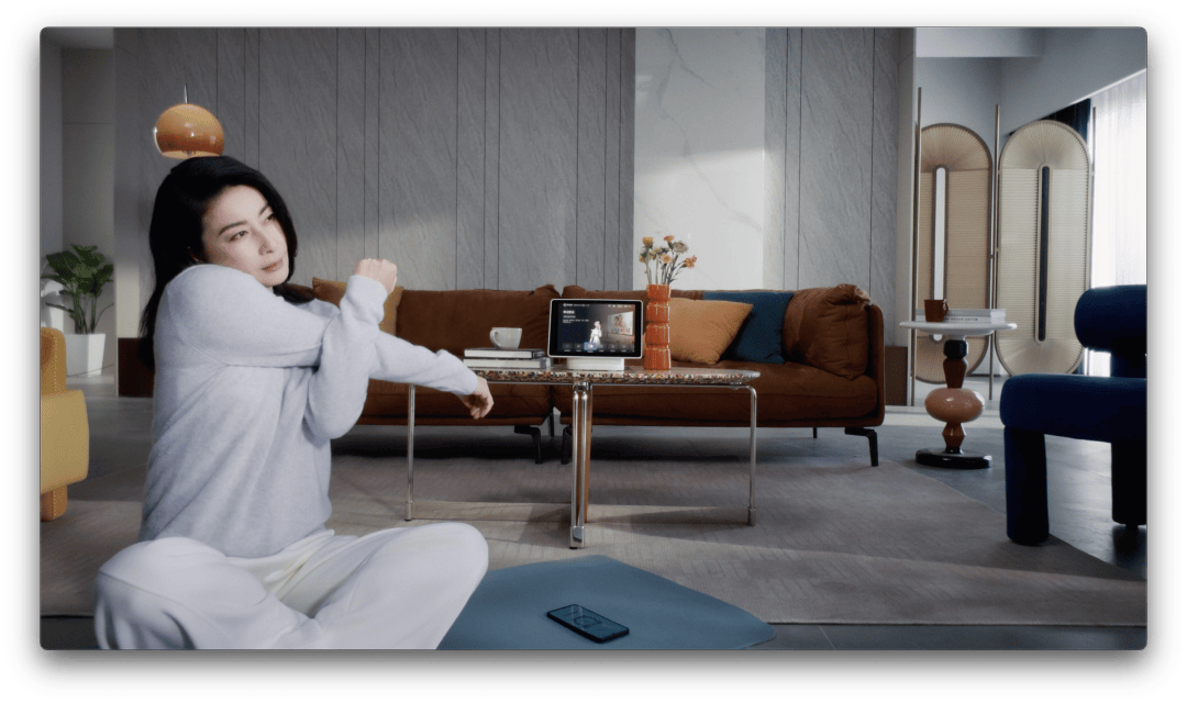甚至在居家锻炼的场景里,灵犀屏的麦克风+摄像头,也解决了传统投屏交互断档的问题,让健身可以更加个性化,而不是只能随着视频进行枯燥乏味的重复。