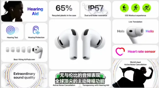 在苹果2025 秋季新品发布会中,率先登场的新品AirPods Pro 3。