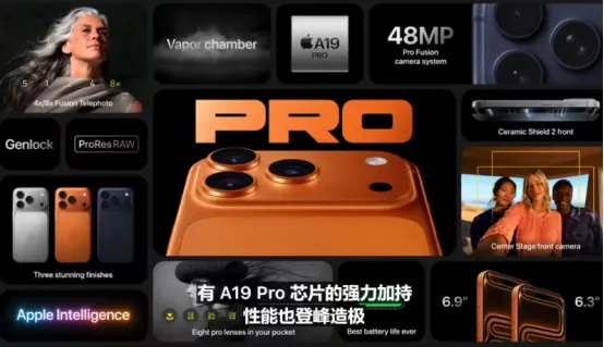 而定位专业市场的iPhone Pro 系列,仍在持续深耕核心能力:散热系统的强化、续航表现的跃升,以及影像端 “三颗 4800 万像素镜头 + ProRes RAW 格式支持” 的组合。