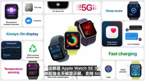 Apple Watch 新品为 SE 3,尽管只是入门版,但同样拥有各项核心功能和优势。