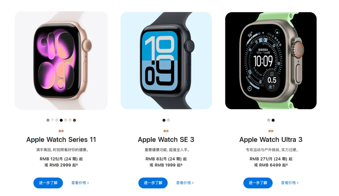 8、Apple Watch Ultra 3:售价为6499 元起。同样是 9 月 11 日早 9 点接受预购,9 月 19 日发售。