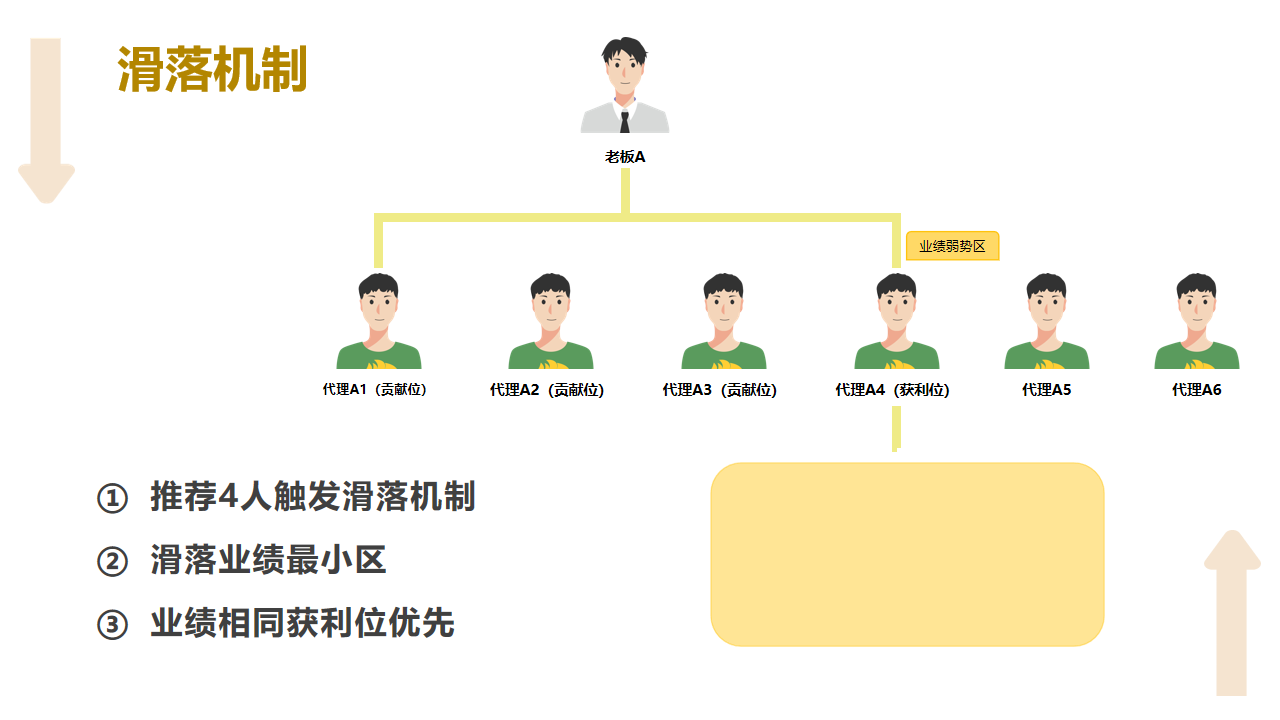 做过团队的都知道,资源总往头部跑,底层没人管。3+1 里,当你推荐满 3 个人后,再新推荐的人会自动滑落到团队里业绩最差的区域。比如老板 A 推荐了 4 个人,前 3 个是自己的核心团队,第 4 个就会滑到团队里最缺人的 “弱势区”。
