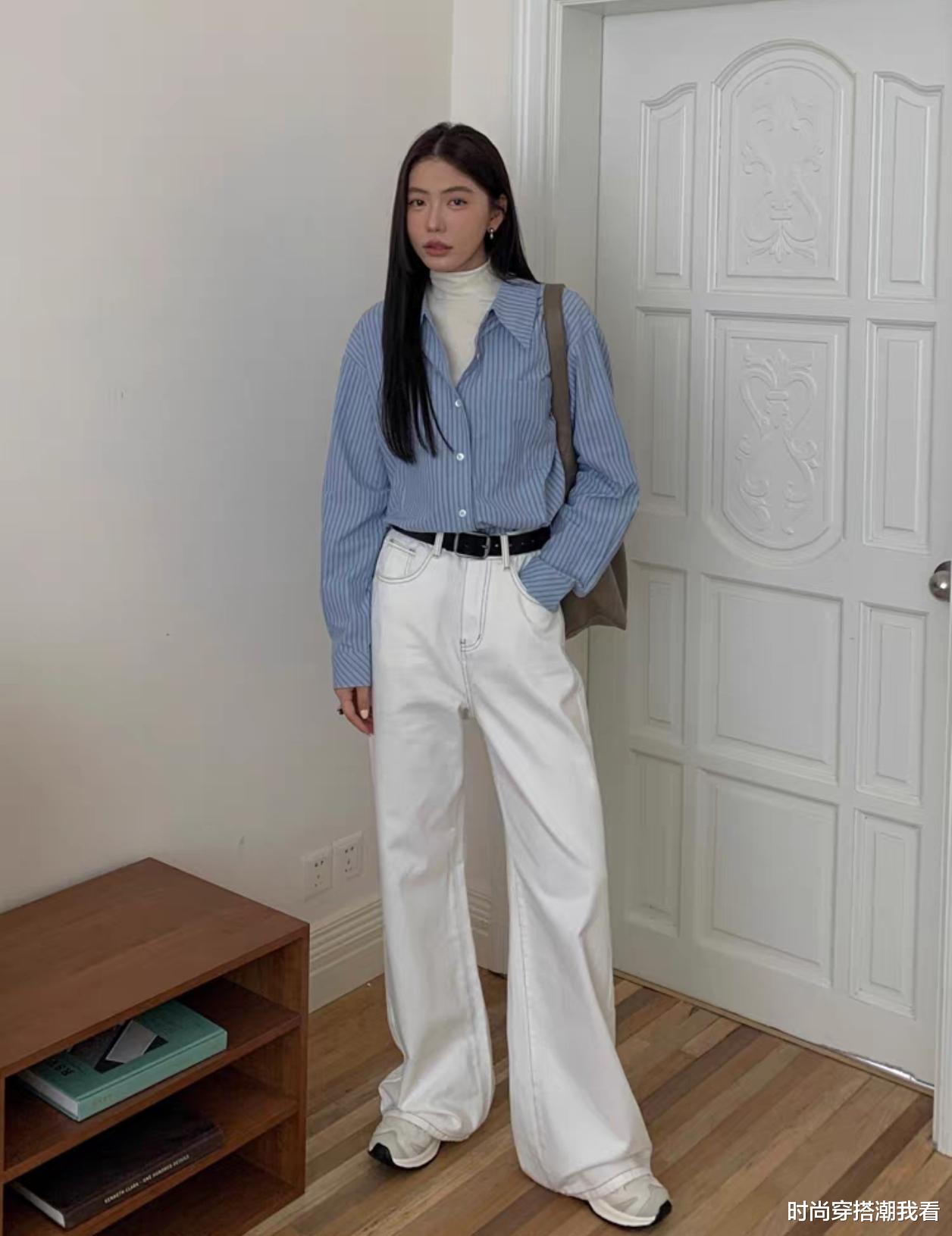 秋冬季节的衣橱里,如果只能选择一条裤子,那一定是白色阔腿裤。
