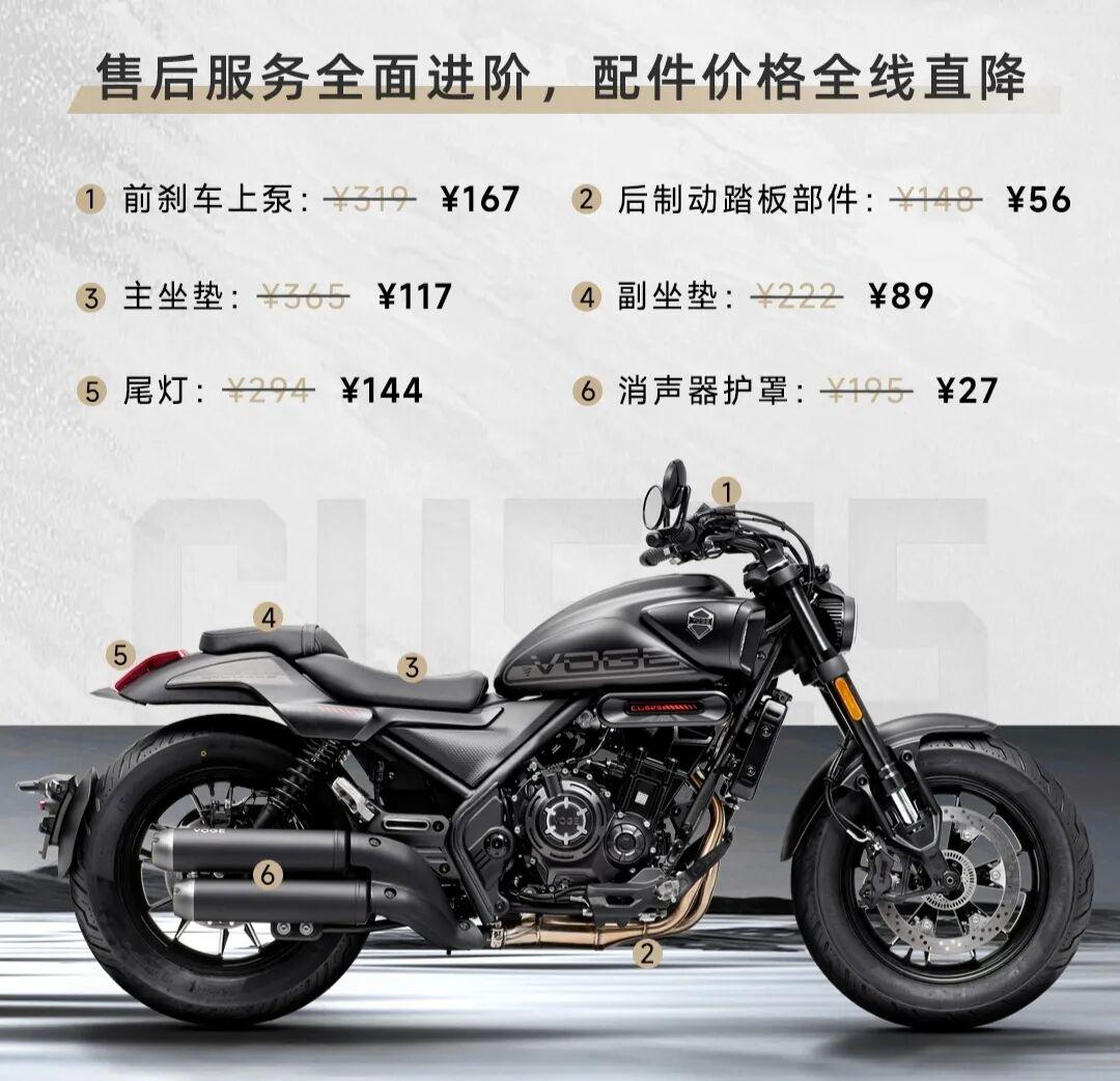 做工上无极的车型在国产品牌中也是第一梯队的表现,从设计层面来说CU525稳重的风格都长在了多数车友的审美点上。整车漆水、覆盖件、焊接、手把质感等这都有很好的表现。值得注意的是在这次链条版到来的同时,官方还对配件价格进行了下调,这对于车主后期维护维修而言都将带来更省的养护成本。
