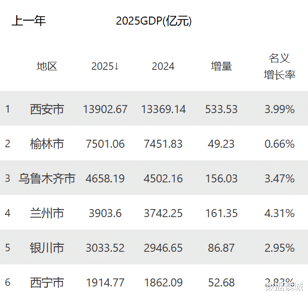 西安2025年GDP达13902.67亿元,增速4.7%,稳居西北第一,也是西北唯一跻身万亿俱乐部的城市。乌鲁木齐、兰州、银川、西宁的GDP均未超过5000亿,上述城市行政层级足够,但体量差距决定了资源承载、产业落地的基础上限。西北地区GDP最靠近西安的,是同属陕西的资源城市榆林,虽然榆林被陕西委以重任,但行政层级差了西安一截。