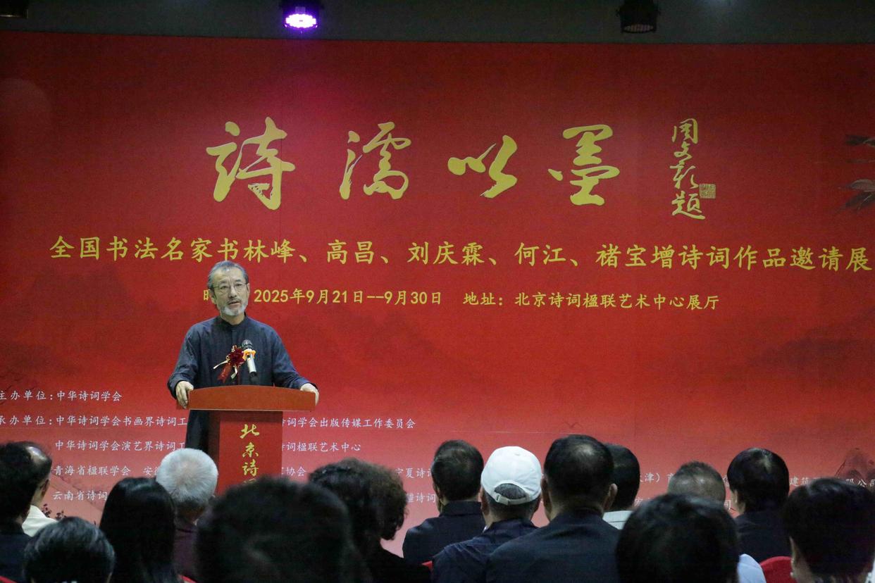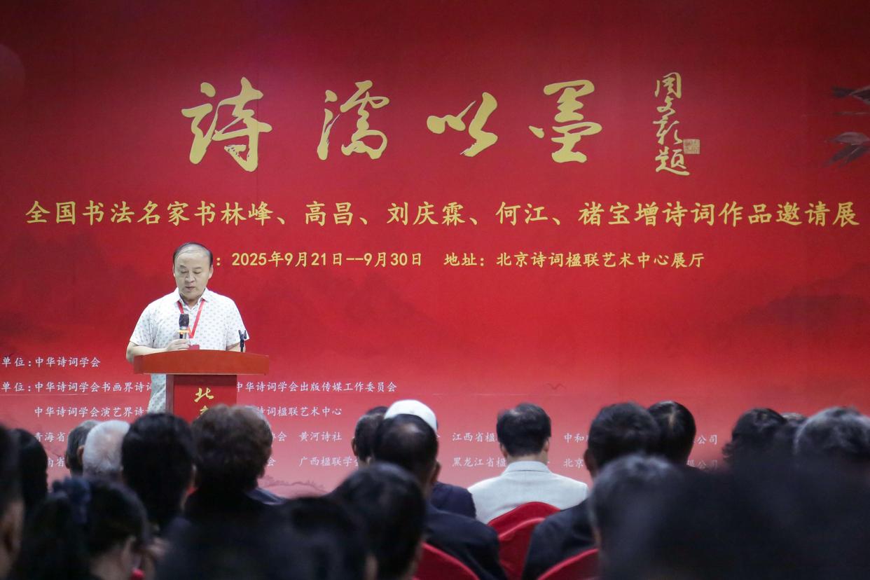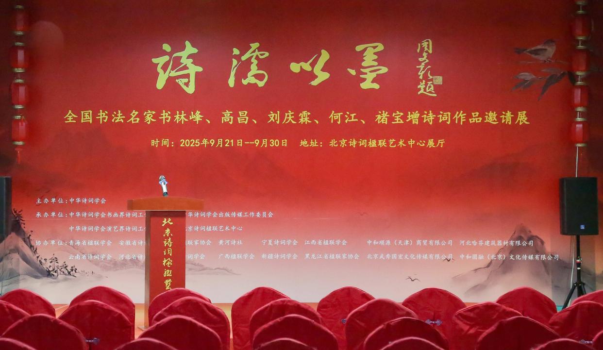 9 月 23 日,二十四节气之秋分时节,由中华诗词学会主办,中华诗词学会书画界诗词工作委员会、中华诗词学会演艺界诗词工作委员会、中华诗词学会出版传媒诗词工作委员会、北京诗词楹联艺术中心承办的“诗濡以墨”——全国书法名家书林峰、高昌、刘庆霖、何江、褚宝增诗词作品邀请展在北京诗词楹联艺术中心盛大启幕。