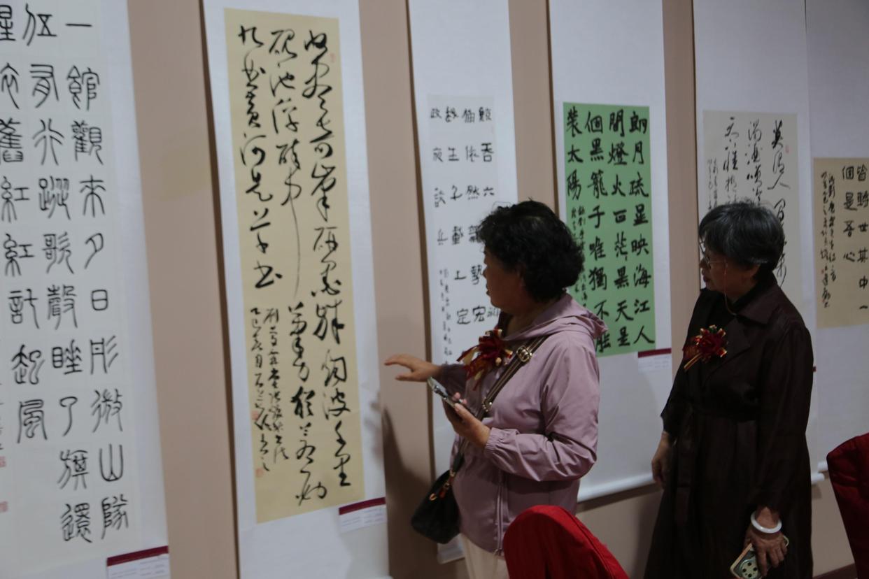 开幕式结束后,嘉宾与观众们纷纷走进展厅观展。百余幅书法作品沿展线依次陈列,篆隶楷行草诸体兼备,风格各异却同为诗心写照。有的笔力遒劲,尽显豪迈气概;有的飘逸灵动,宛如行云流水;有的古朴典雅,蕴含深厚底蕴。作品中,诗词的意境与书法的笔墨完美融合,让观众仿佛置身于诗书的世界。大家驻足观赏,时而轻声诵读诗句,感受文字之美;时而交流书法技法,探讨艺术魅力,现场氛围热烈而温馨。