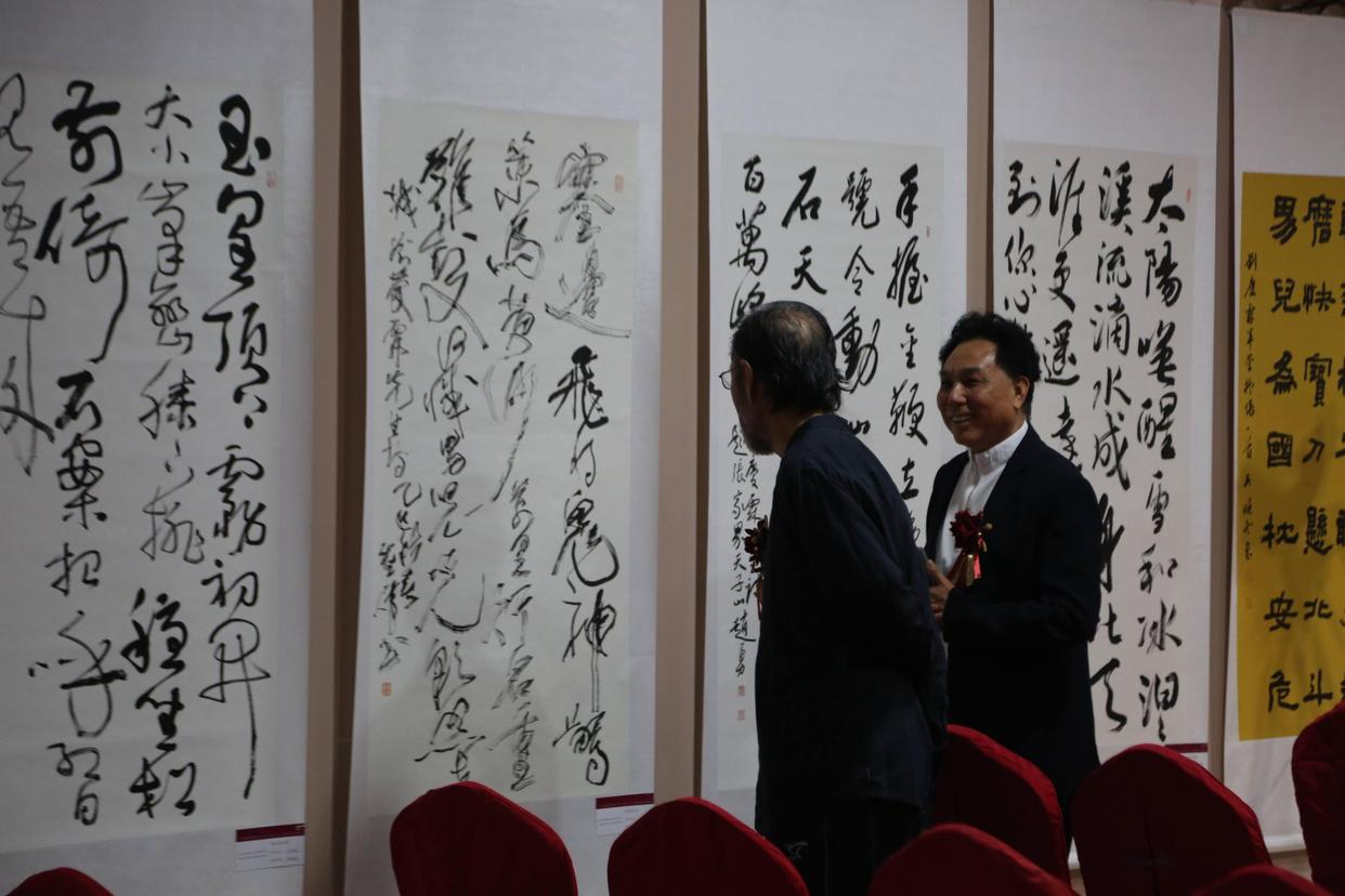 原中国银监会纪委副书记、监察局长,同时身为中华诗词学会会员、毛泽东诗词研究会常务理事廖有明,在致辞中分享了现场创作的七绝《恭贺〈诗濡以墨〉展开幕》:“借得潞阳方尺间,双修诗墨献高端。秋分正是吟歌日,韵事同侪纵尽欢”,以诗句为展览增添诗意祝福。
