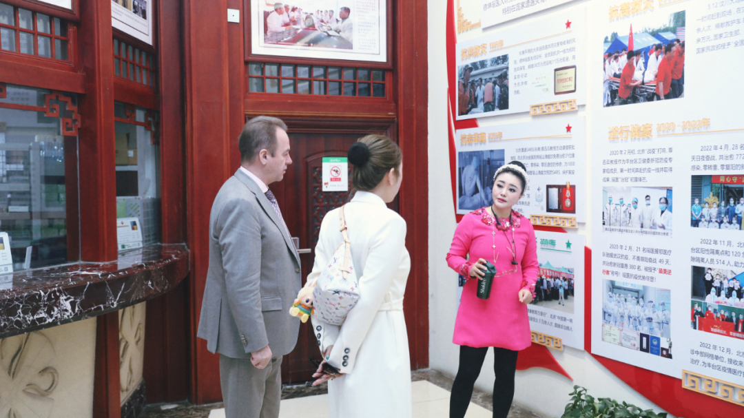 盖舍勒·维克多·艾瓦多维奇总裁一行在院方引导下,全面了解北京瑶医医院的发展历程、学科建设与非遗传承体系。作为以覃氏瑶医360余年传承为根基、以肿瘤与风湿免疫病为特色的民族医疗机构,医院始终坚守“医教研一体化”发展路径,将传统瑶医药智慧与现代医疗标准深度融合。外宾一行认真听取瑶医药起源、诊疗理论、临床应用介绍,对瑶医“减法生态医疗模式”的理念表示高度认可,对中国民族医药的深厚底蕴赞叹不已。
