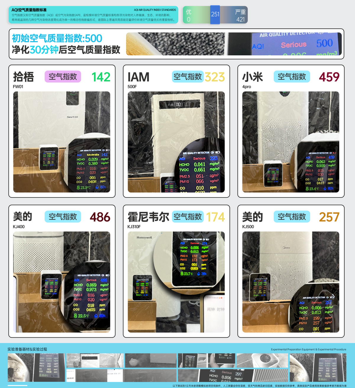 净化一般:小米4pro、IAM 500F、美的KJ400