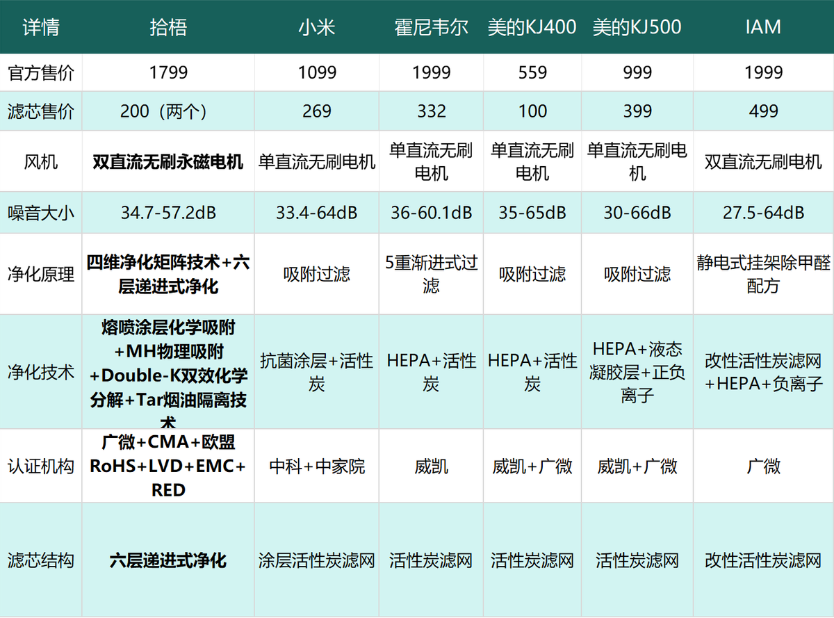 第二梯队:IAM、美的KJ400、霍尼韦尔KJ310F