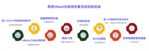 市面上普通麦克风的DSP芯片通常采用定点数计算,基本上采用16位或24位定点数计算处理信号,存在精度、动态范围受限,算法灵活性和计算效率低等弊端,严重影响音频质量。西圣Mike Pro采用比前代产品更高的32位浮点数计算的DSP,搭配48kHz采样率的加强版全指向AI感知麦克风,通过多重降噪算法模型,声音清晰度达98%、抗噪性达96%,音频体验真实、清晰、平衡,如同现场live。其信噪比105dB、采样率48kHz、延时20ms,连接稳定性、距离和续航时间等核心技术,与行业诸多竞品相比,只有它做到清晰度提升120%,收音效率提升105%,抗干扰能力提升130%,行业唯一不存在收音间断、忽强忽弱,且可靠耐用性在行业内首屈一指!获多项“行业领先”综合收音性能,堪称千元内最强。