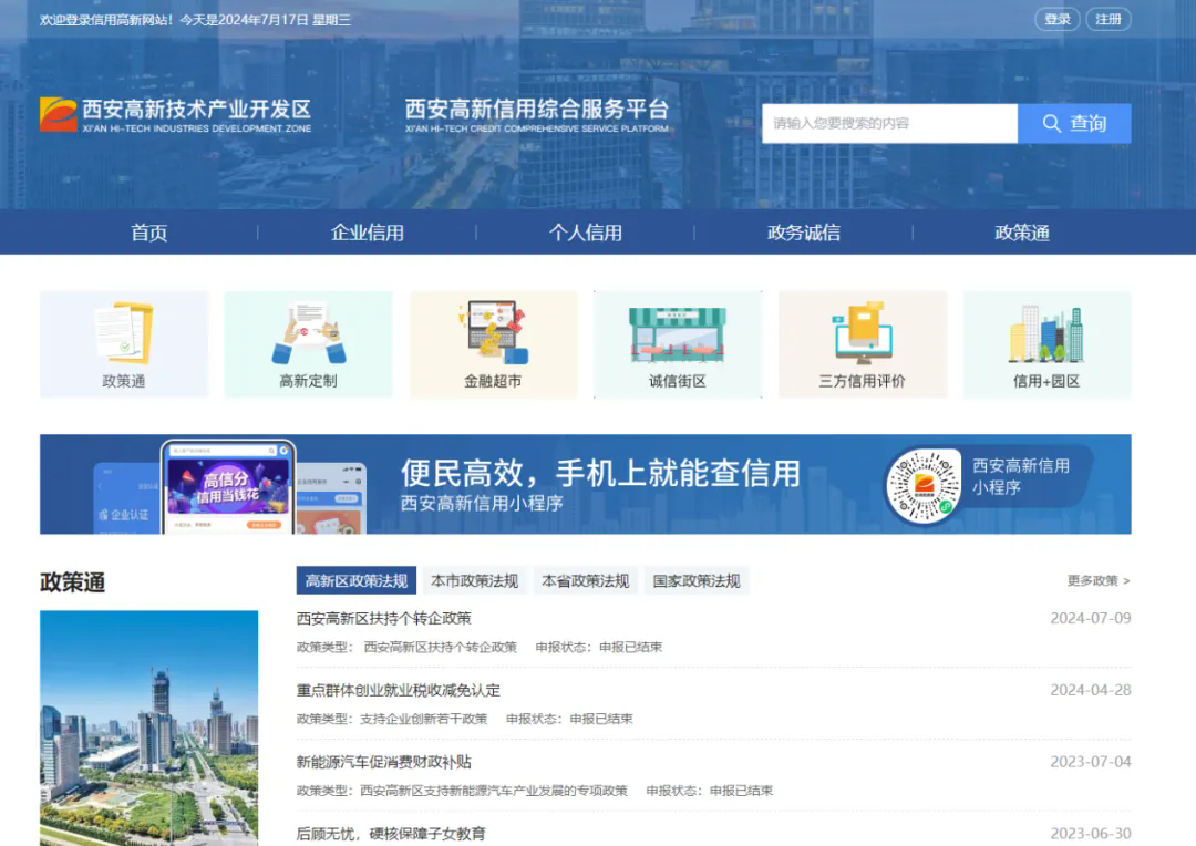 今年7月,“西安高新区信用综合服务平台”上线发布,该平台分为政务诚信、企业信用、个人信用3个板块。其中,个人信用板块在全市首次推出个人信用积分,“高信分”分数越高的个人,在信用惠民应用场景享受的优惠就越多,为营造更加良好的信用环境奠定了坚实基础。