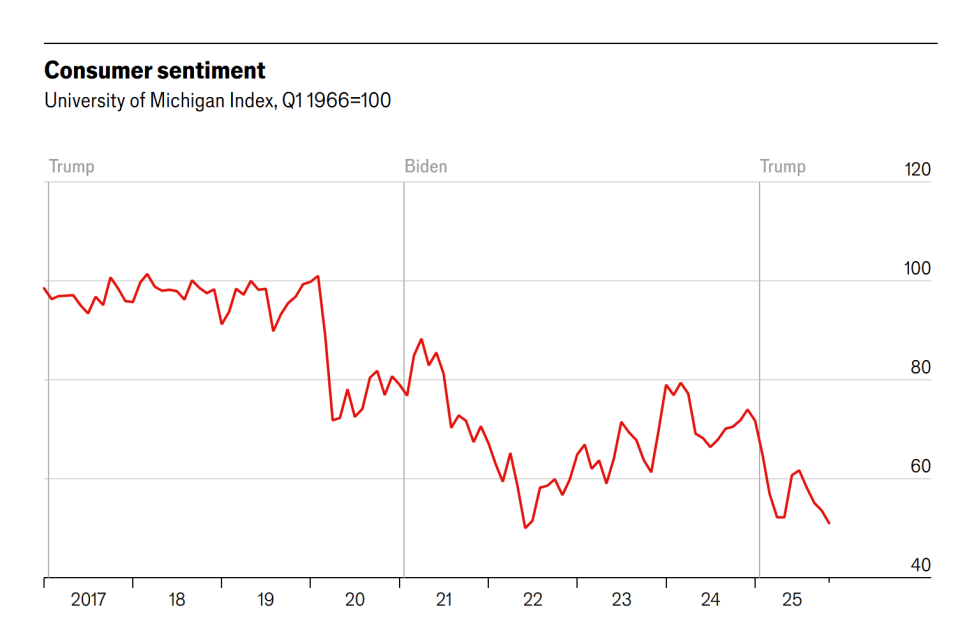 自特朗普胜选以来,股价经历了剧烈波动。投资者最初对其回归表示欢呼,但随着4月2日“解放日”关税政策的公布,股市随即遭遇重挫。此后,部分关税措施的逆转在一定程度上推动了股价回升。目前的股市水平仅略高于大选日,显示出市场在政策摇摆中的犹疑与挣扎。