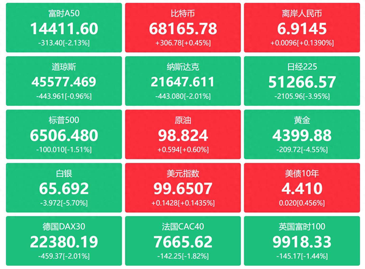 受战争风险升级担忧,3 月 23 日亚太新经济体股市提前暴跌,A 股被财经自媒体称为 “股灾”,资金疯狂避险。
