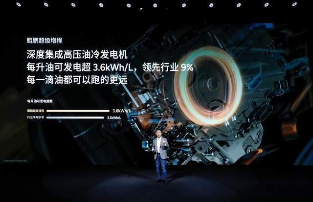 作为发布会核心,鲲鹏超级增程系统整合了小鹏多项自研黑科技,构建起 “高效发电、极速补能、全域适配” 的技术优势。其搭载第三代 1.5T 超静音增程器,配合全球首创 800V 混合碳化硅同轴电驱,CLTC 综合效率高达 93.5%,高压油冷发电机实现每升油发电超 3.6kWh,显著优于行业平均水平。