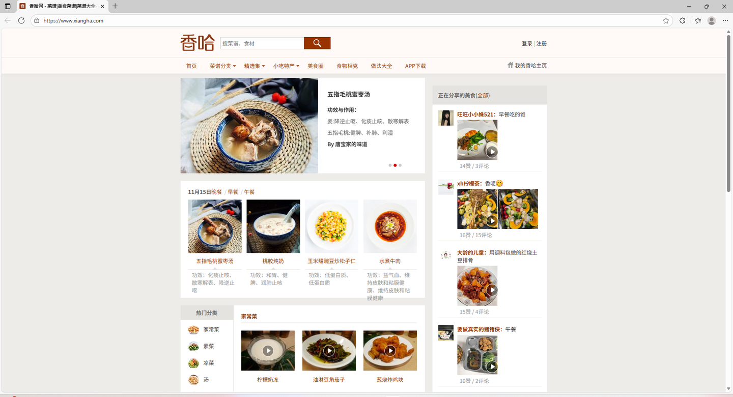 网站地址:香哈网 - 菜谱|美食菜谱|菜谱大全-学做菜、秀美食!
