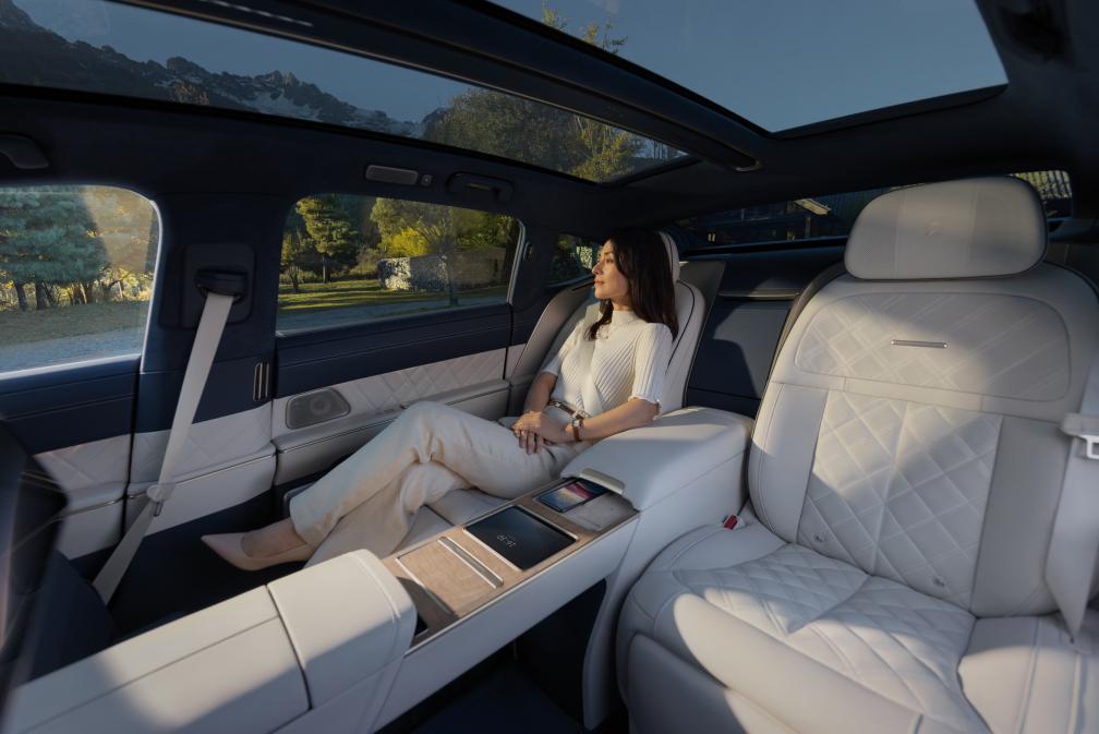 而步入座舱,“天行底盘”的技术红利仍在延续,2150mm长的“行政桥”贯穿前后排,集成了20余项子系统,配合门板形成对每个座位的环抱式空间,再加上拥有24项专利的飞航头等舱座椅以及精致内饰、氛围灯效、沉浸式音效,顶级NVH静谧性等多重Buff加持,既能让商务洽谈尽显专业庄重,亦能让放松休憩隔绝外界打扰。