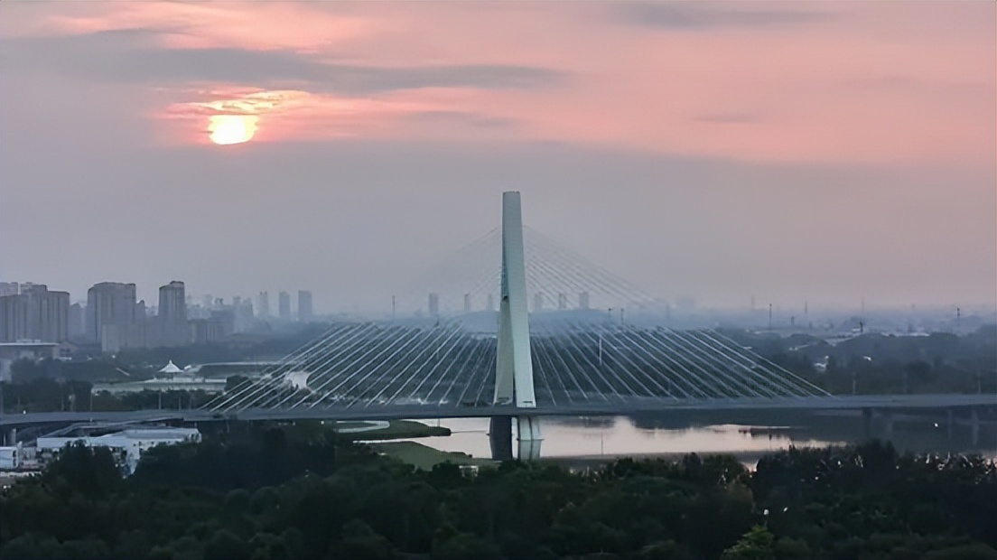 照片里的桥,是学府路桥,横跨太平河上,总长约1.39公里,主桥长300米,最大跨径为160米,已于2023年5月31日正式通车。
