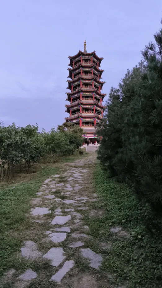 这是一座七层八角攒尖塔,高38米,是这一带的最高点。
