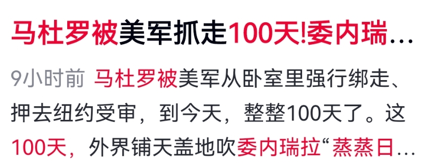 截止当地时间4月12日,美军深夜突袭加拉加斯,强行将马杜罗掳至纽约受审,整整过去了100天。全网刷屏委内瑞拉“蒸蒸日上”,政治和解、经济暴涨、民生回暖,可剥开层层包装,这场所谓复兴,从来都是美国霸权一手操控的傀儡戏,满是小国的屈辱与无奈。