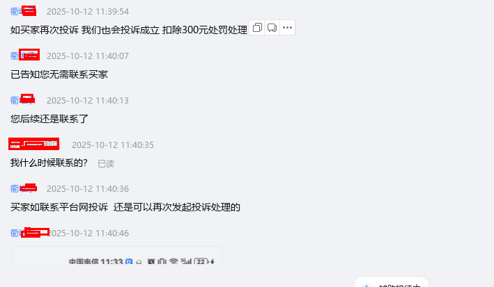 用诱导性的方式增加沟通频次,将买家陷入怎么回复都是错的地步。用虚假证据来陷害卖家,试图依次来获得更多的扣罚得利。