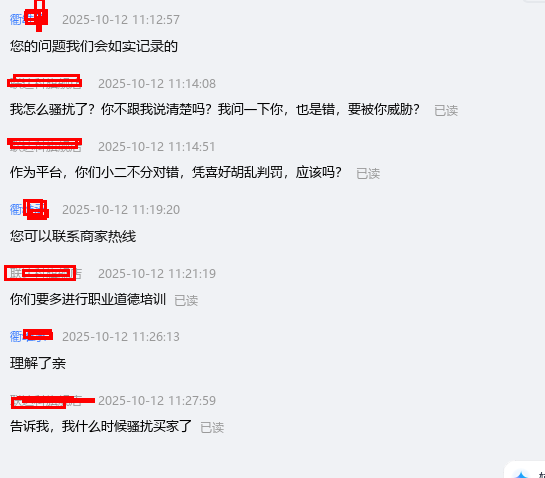 小二完全不看我表述的内容,不断地强调他监测到了我骚扰买家,要罚我们300元。