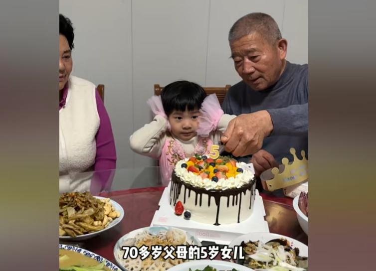 因为镜头里,73 岁的田新菊脸上皱纹明显,需要扶着桌子才能站稳,74 岁的黄维平头发花白,给孩子切蛋糕时手都有些微颤。